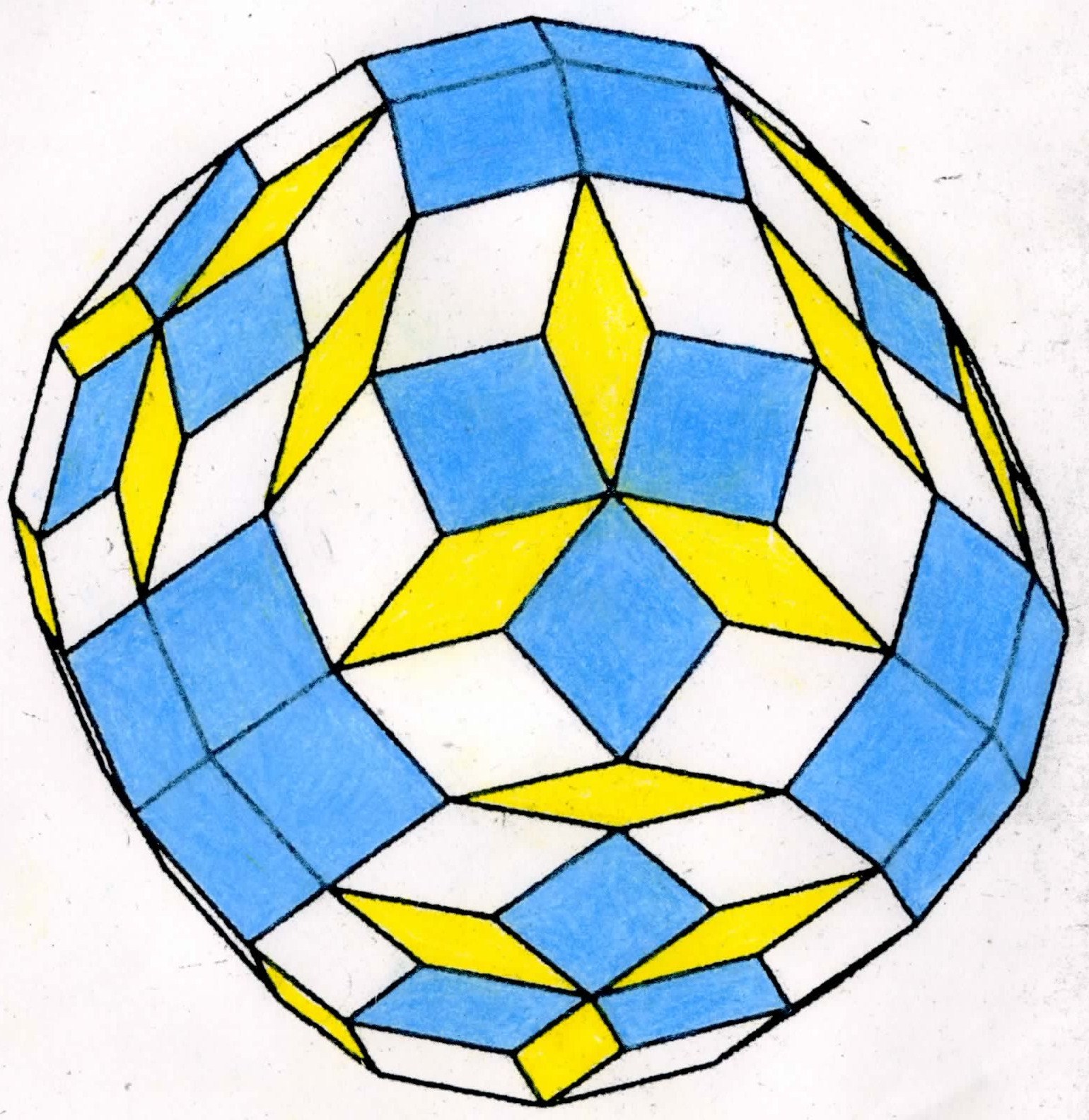 The rhombhecto-triadiohedron is of two types and each one consists of three kinds of rhombus. Refer to the sketches below. In view of the above-mentioned facts, these rhombuses are analogized to correspond to either the silver rhombus, golden rhombus, silver square rhombus or the golden square rhombus. However, this has not been confirmed yet. Furthermore, the following points have not been elucidated and they are still veiled in mystery.